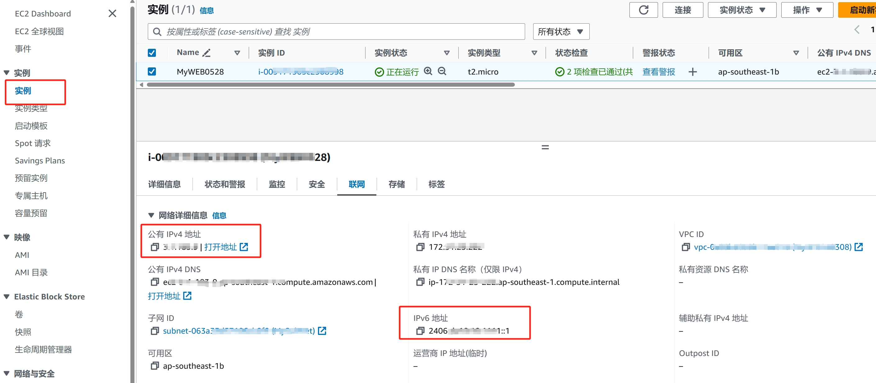 注意:只有EC2有IPv6,Lightsail没有